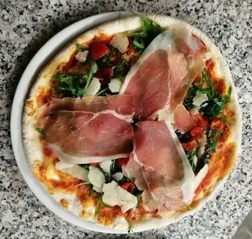 mit Rucola Cocktailtomaten, Parmesan,Parmaschinken.